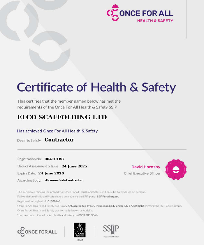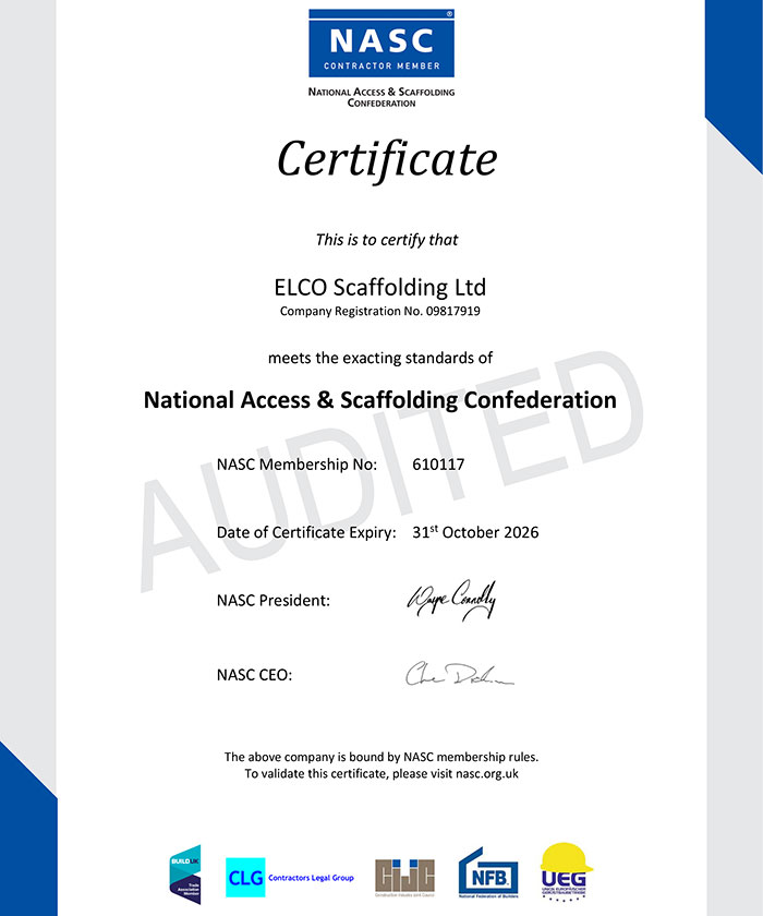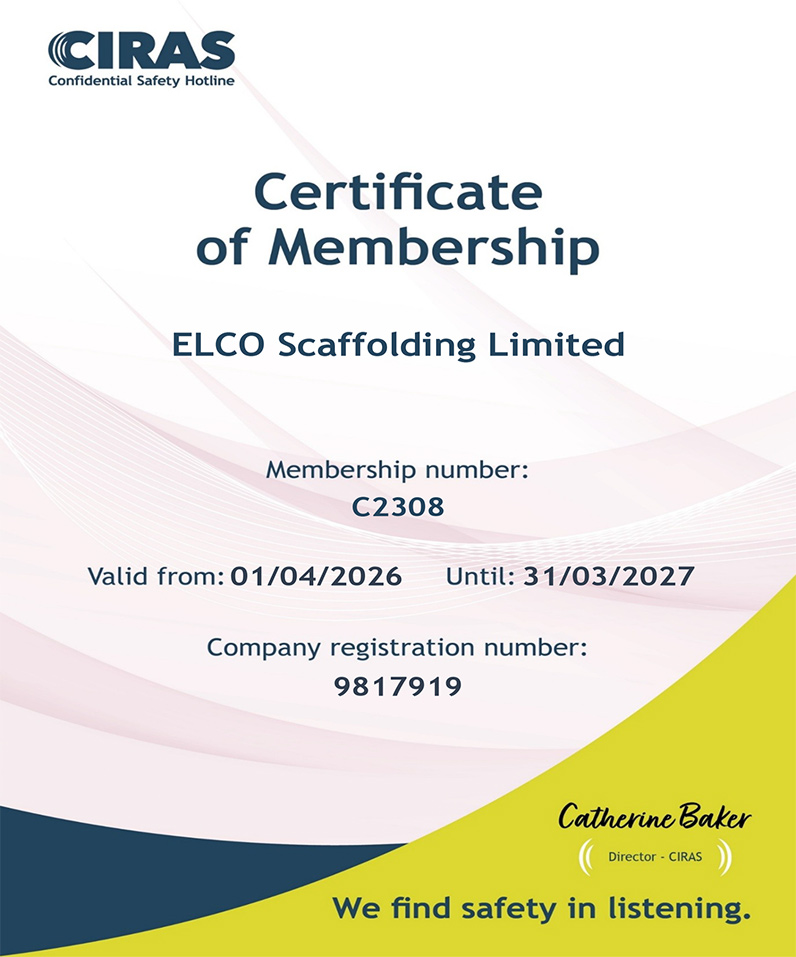 Our hardworking approach is mirrored by our recruitment standards. Elco is a name associated with the hire of talented scaffolding contractors, all of whom have undergone training to CITB standards and have sat the requisite CISRS courses. It is important to us that all clients enjoy a positive experience from the first point of contact until scaffolding services are no longer required.